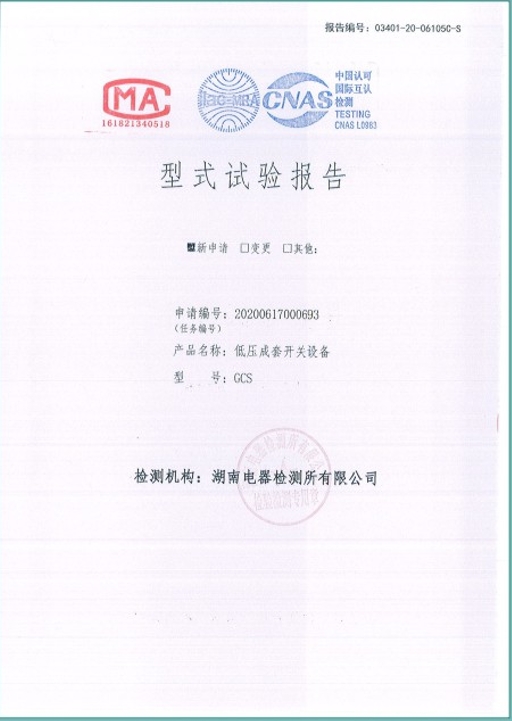GGD-1600A型式試驗報告